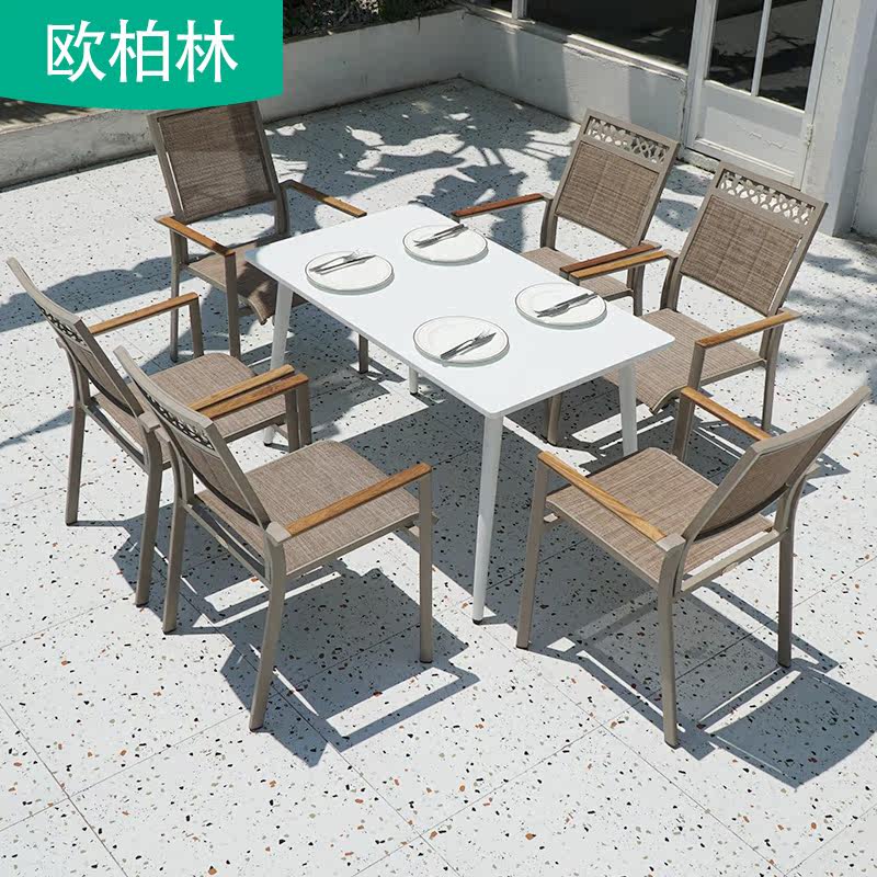Outdoor courtyard simple tables and chairs balcony casual wrought iron tables and chairs outdoor garden model room modern dining table and chairs combination