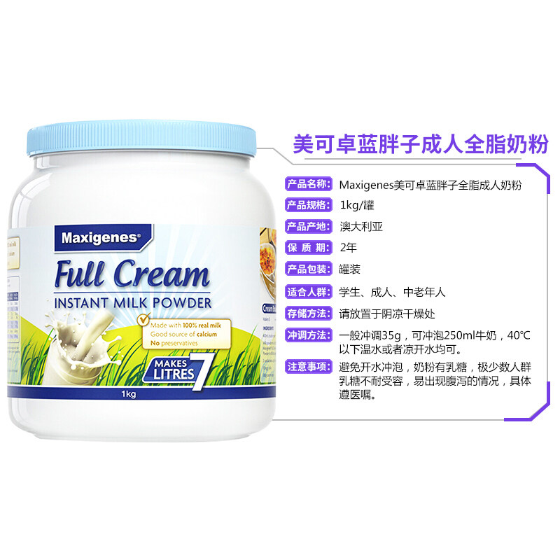 Australian maximabol blue fat milk powder adolescent middle-aged and elderly pregnant women adult full fat high calcium 1kg