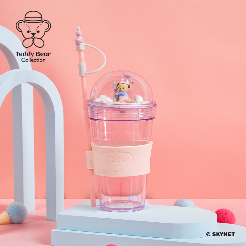 Teddy collection Oriental Pearl scene Straw cup Cute shape water cup large capacity cartoon Teddy Bear