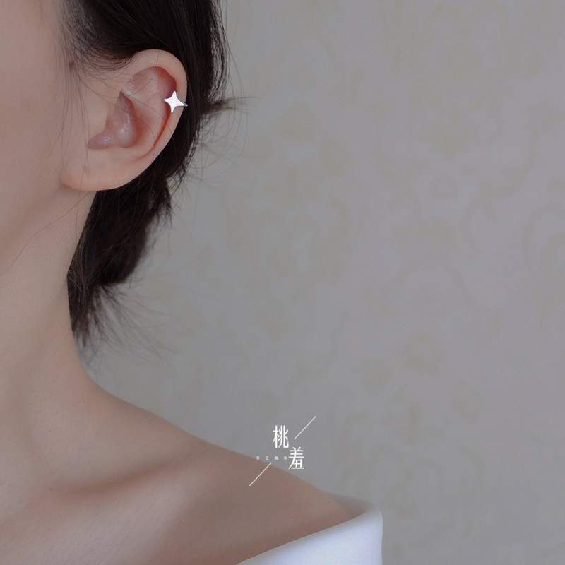 S925 sterling silver shiny star earrings personality small star-shaped ear clips sleep without picking earrings female mini