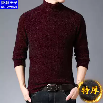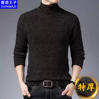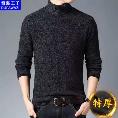 Turtleneck sweater men's black autumn and winter warm thickened Tide plus velvet slim thick imitation mink velvet men's sweater