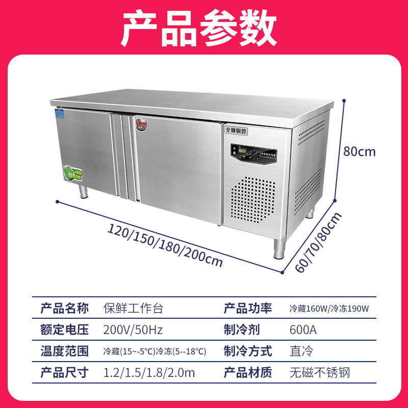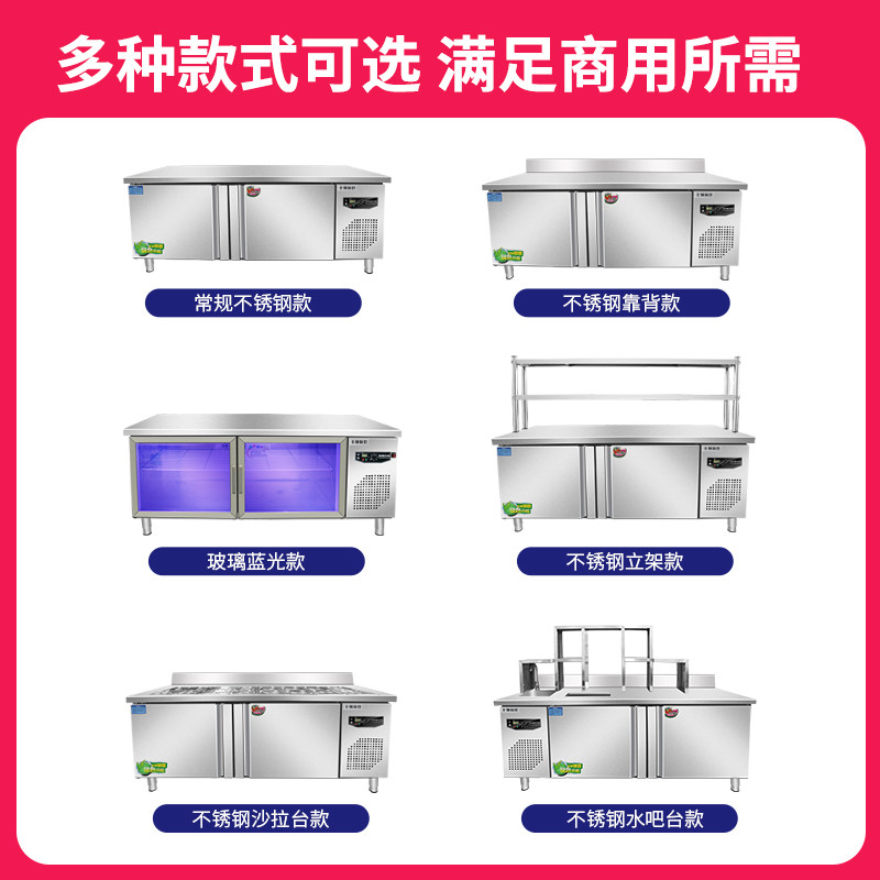 Refrigerated freezer workbench commercial freezer kitchen horizontal refrigerator freezer milk tea console fresh-keeping flat freezer