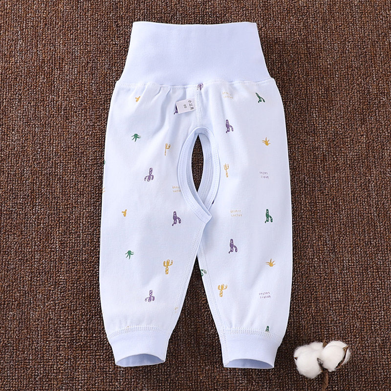 Newborn baby spring and autumn pure cotton sweats pants male and female baby high waist belly pants single layer pants