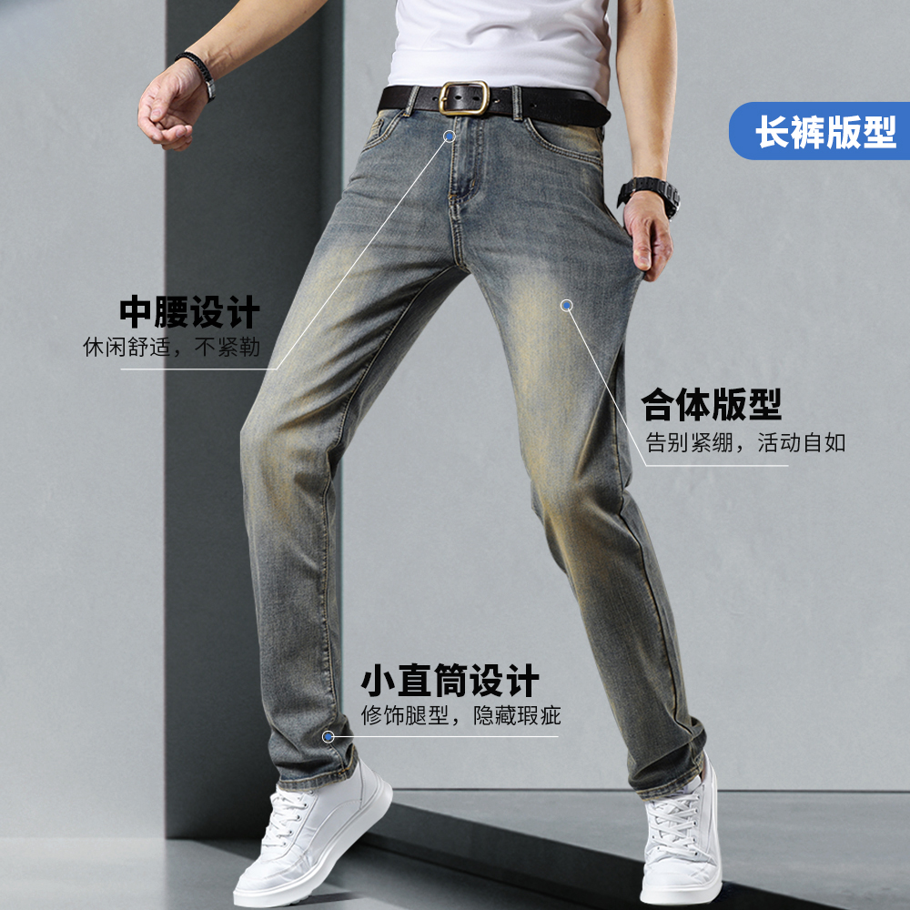 Spring autumn season New products Elasticity Men's Retro Straight Barrel Jeans Men Loose 100 hitch a thin section Japanese Cigarette Grey Long Pants