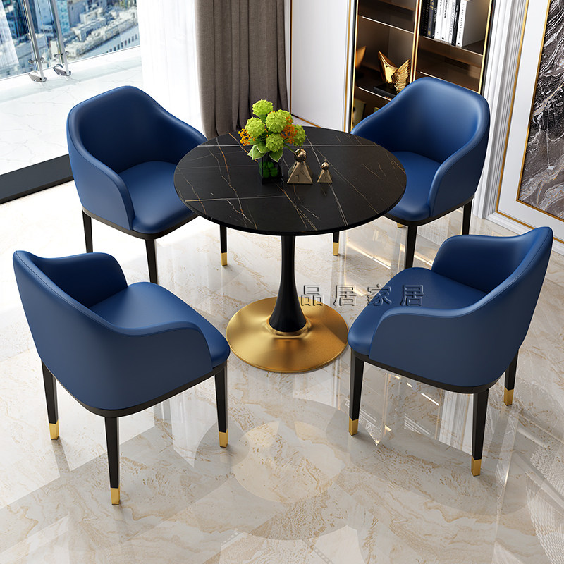Net Red Rock Plate Dining Table Home small family Type of light extravaganza Reception Negotiation Table And Chairs Combination Small Round Table Commercial-Taobao