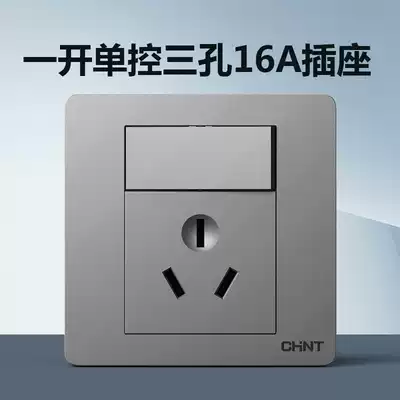 Chint Type 86 switch socket silver one-open three-hole 16A air conditioner plug frameless Gray 1-open 3-hole large panel