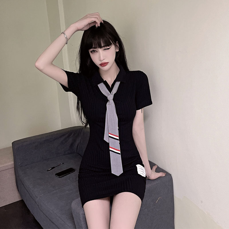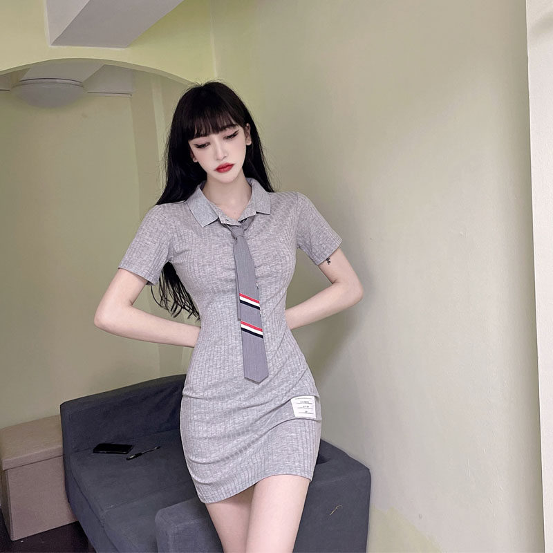 polo collar slim fit skinny wrap hip dress woman summer JK sports casual T-shirt dress night club sexy short dress