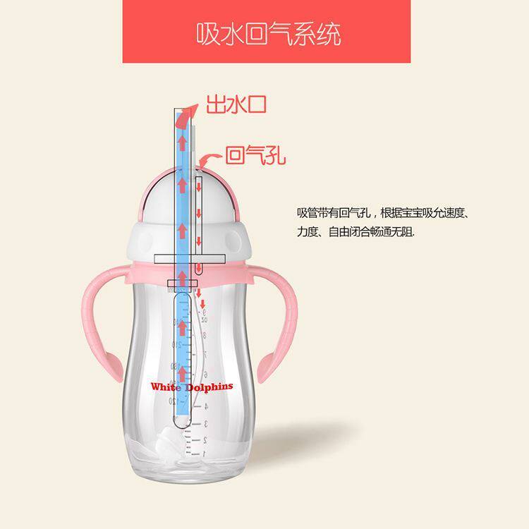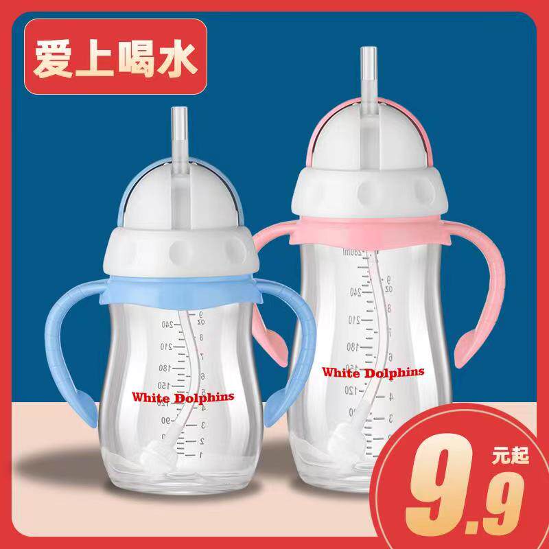 Baby water glass wide caliber with straw Gravity ball baby anti-flatbed gas and anti-leakage baby dual-use drinking water bottle