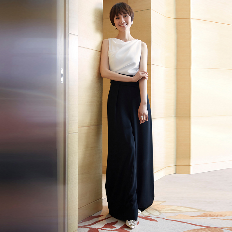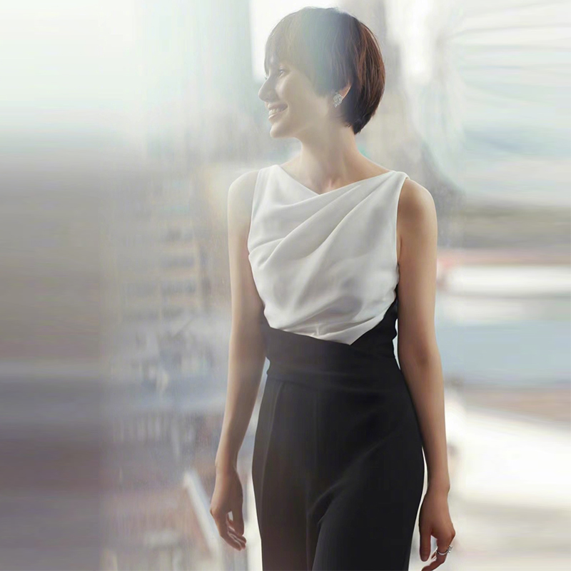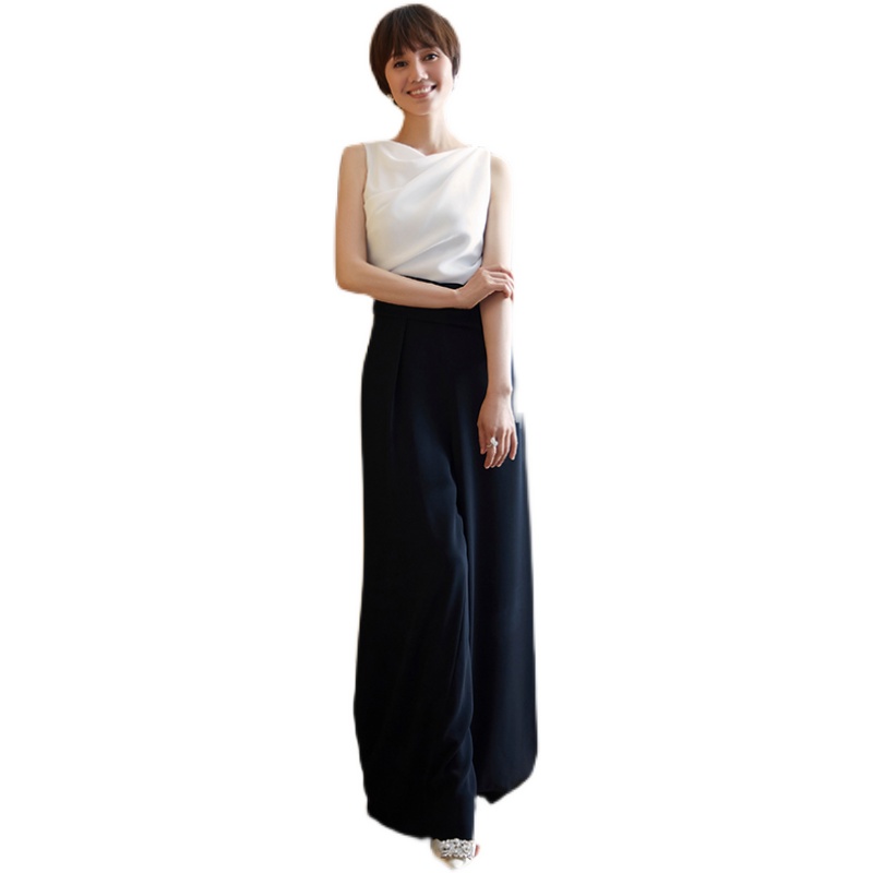 Summer new Yuan Quan same style black and white contrast color professional jumpsuit women's temperament fashion waist loose wide-leg pants women