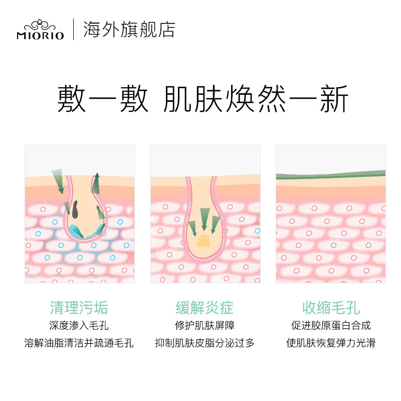 MIORIO Miao repairs pores cleaning simple official original clothing Imported Salicylic Acid cotton sheet Desalinated Pimple