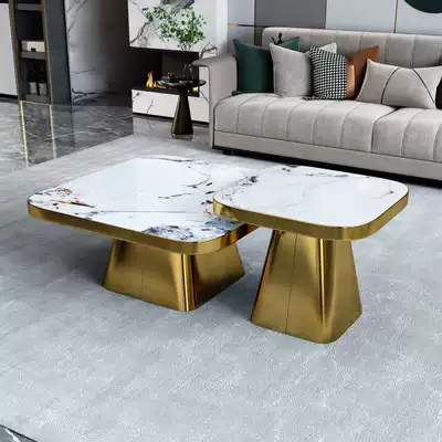 2021 new bright light rock board tea table light luxury designer small apartment fashion simple model room combination