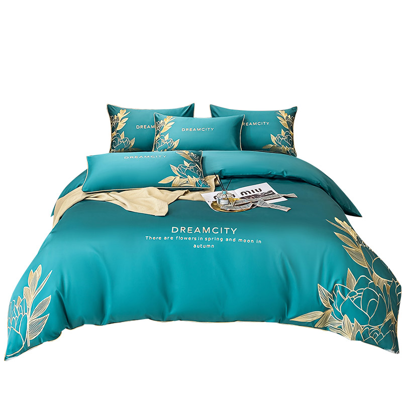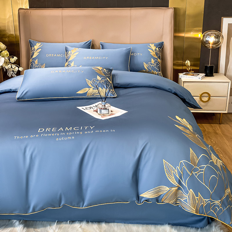 Light and luxurious 180 long suede cotton four pieces full cotton pure cotton 100 Bedsheets European-style high-end home textile Tribute Satin Bedding
