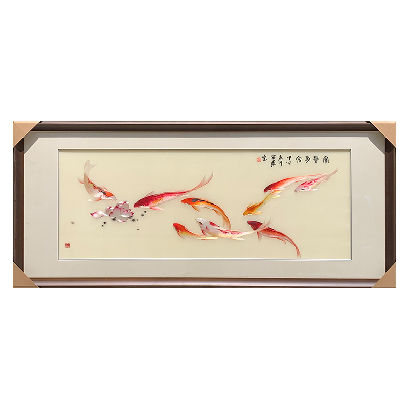 Suzhou embroidery painting 1-4 silk lotus koi nine fish picture rich living room sofa wall dining room hanging picture Chinese style