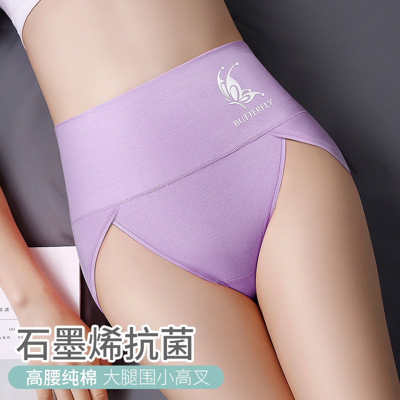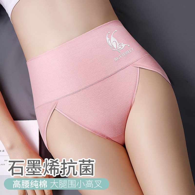 4 strips of graphene women's underwear pure cotton antibacterial high waist collecting belly lifting hip large size size triangular pants mid-waist plastic body underpants