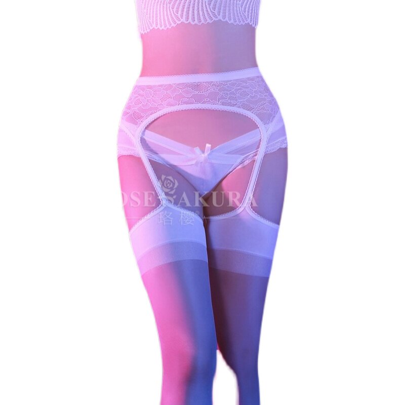 Nurse stockings for wife lace suspenders all-in-one socks ultra-tight ultra-thin black silk sexy four-sided open crotch long knee socks