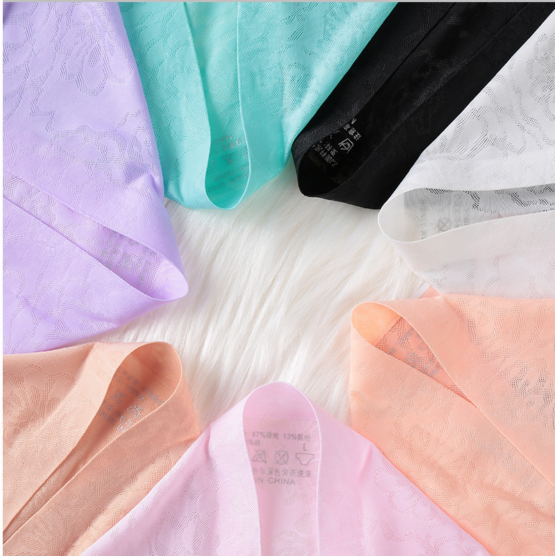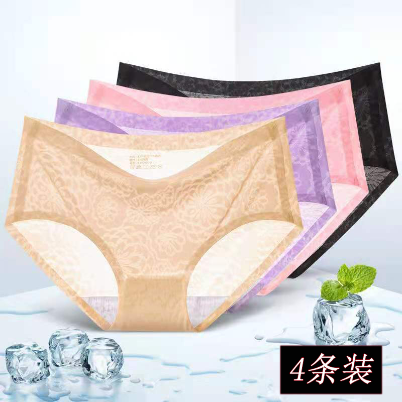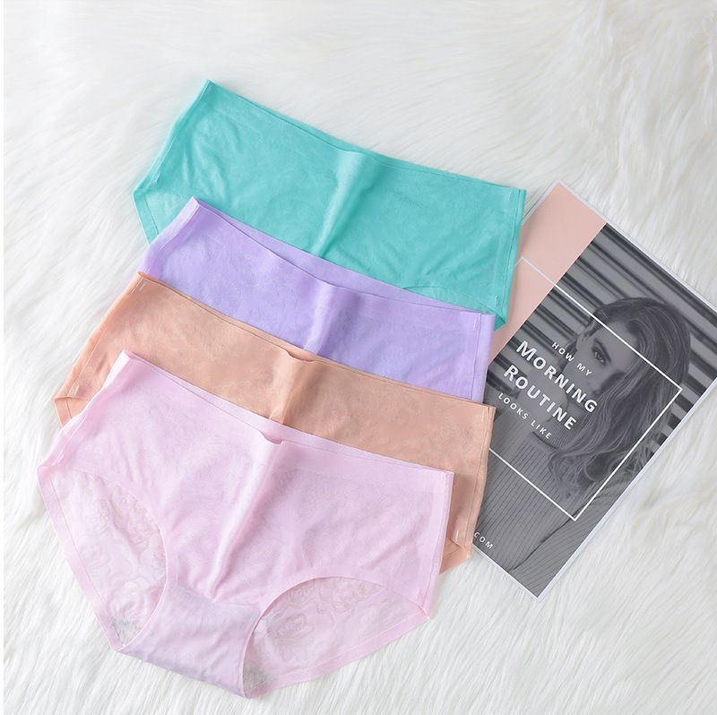 1-4 Pack Ladies Seamless Ice Silk Panties Women's One Piece Perspective Jacquard Mid Waist Sexy Breathable Briefs