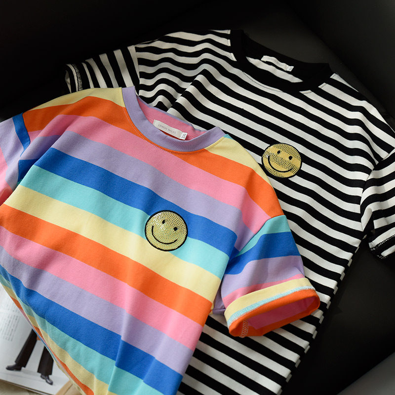 9475 black and white with a smiley face skirt 9476 Rainbow wide with a smiley face skirt