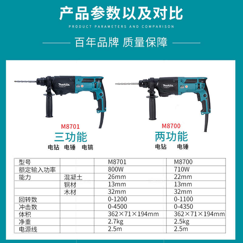 Ranchland Electric Hammer Drill Impact Drill M8700 Wall Drilling Three - use Multi - function Electric Drill 220V Power Tool