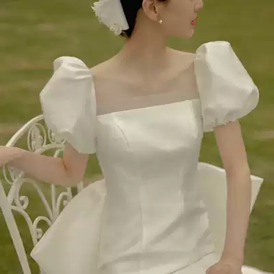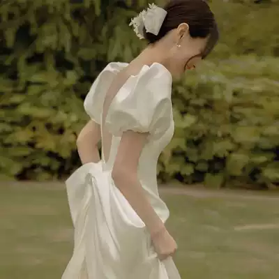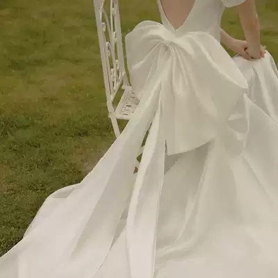 French backless light wedding dress 2021 new bridal dress satin white simple high-end Welcome go out yarn summer