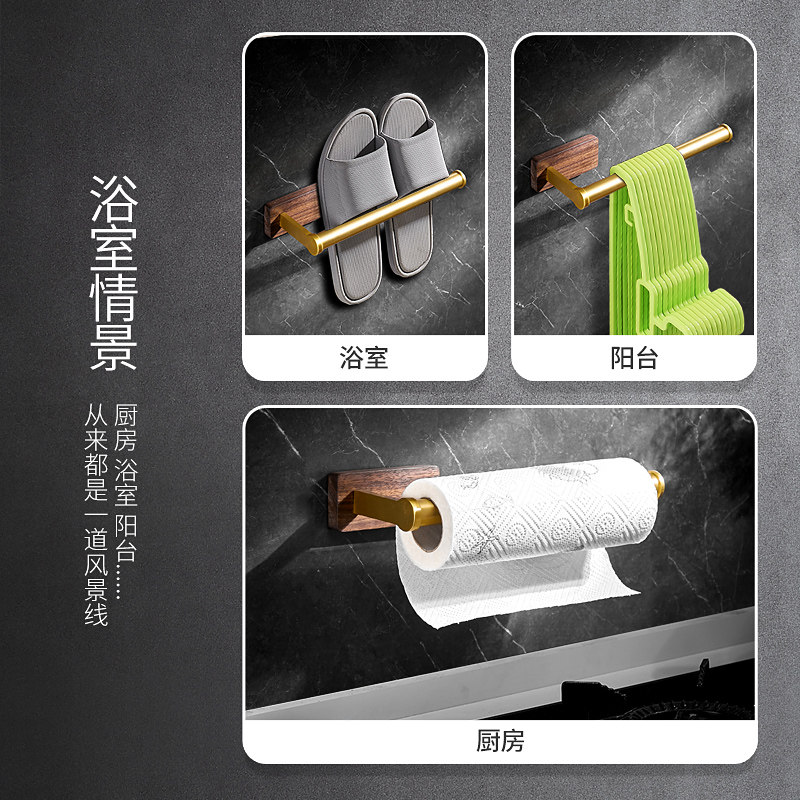 Solid wood paper towel rack free punching plastic wrap rag storage hanger bathroom roll paper rack shelf creative light luxury