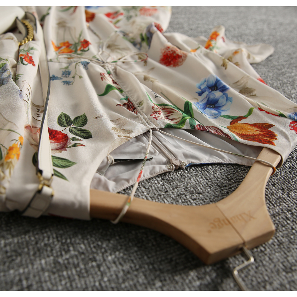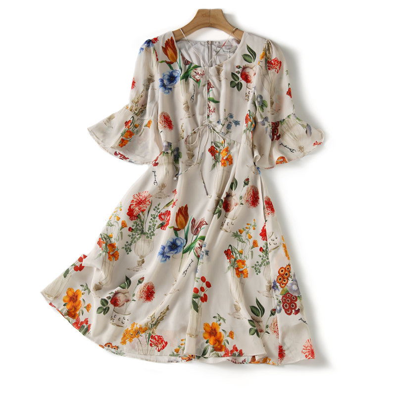 French design silk dress women's summer thin section 2022 new lotus leaf sleeve V-neck mulberry silk printed skirt