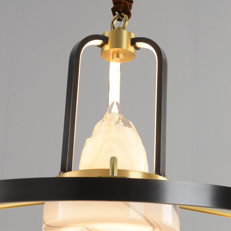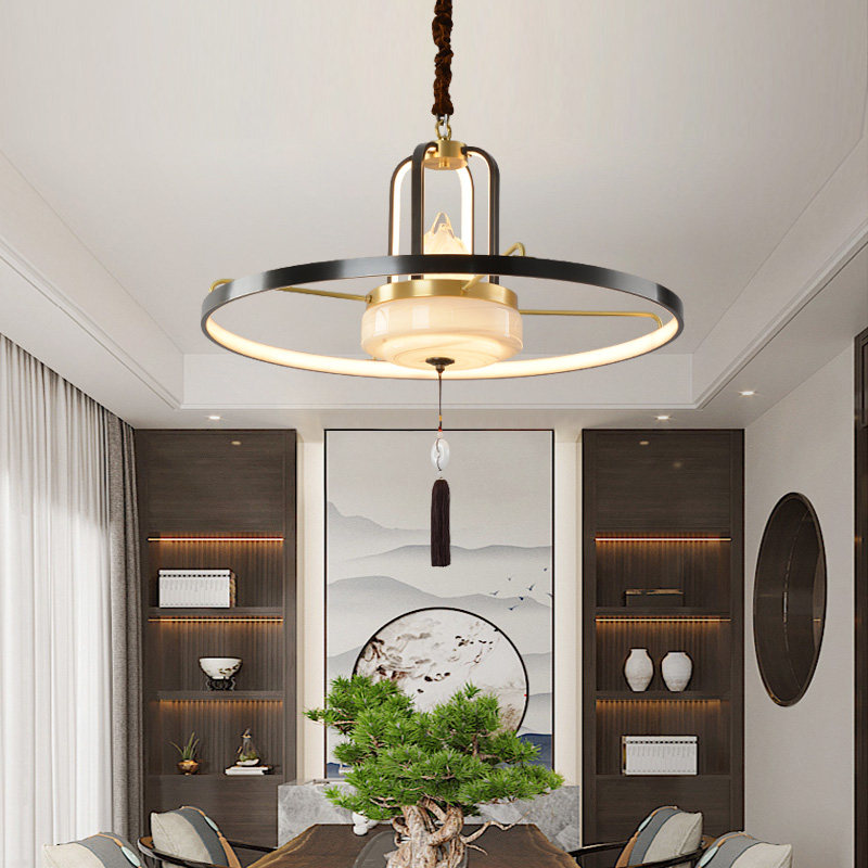 New Chinese all-copper chandelier living room modern Chinese style Creative landscape art design tearoom dining room lamps