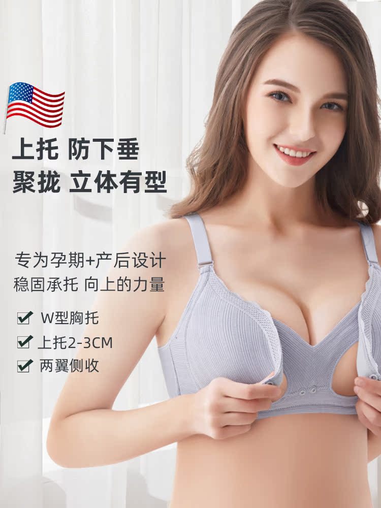 Mu Zhiyi Breastfeeding Underwear Pregnant Women Bras Large Size Pregnancy Spring and Autumn Thin Section Postpartum Breastfeeding Gathered to Prevent Sagging