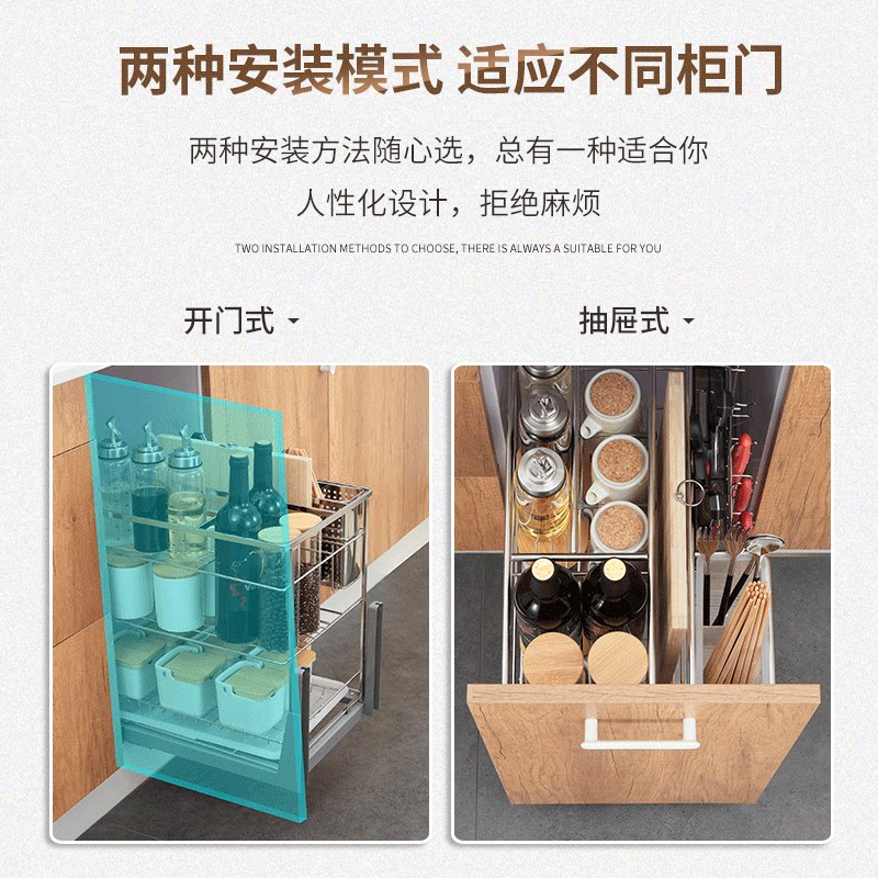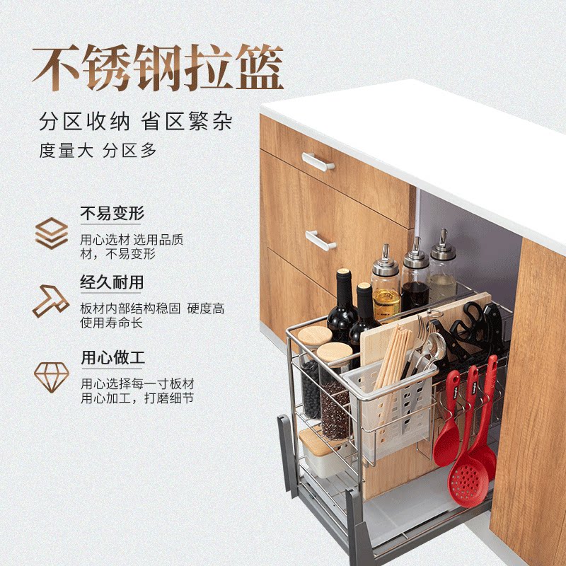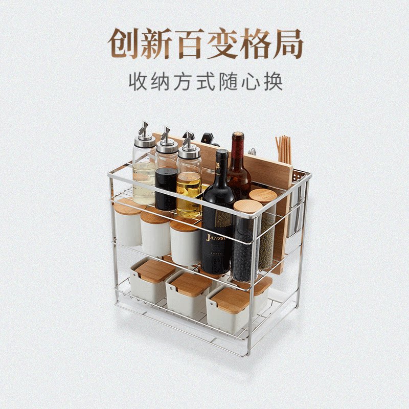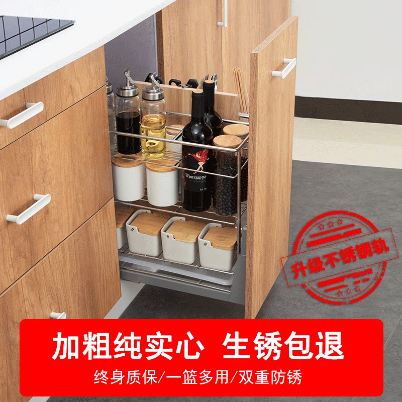 Master cabinet pull basket drawer double-layer 304 stainless steel kitchen storage bowl basket seasoning basket built-in bowl rack