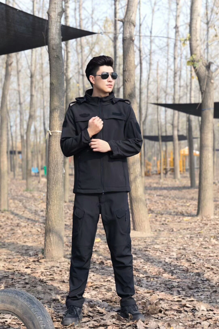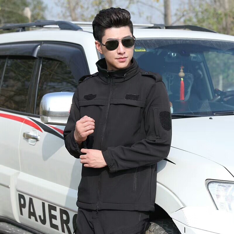 Black Shark Skin Shell Men and Women Winter Capture Ferry Fans Outdoor Multi-function Security Costume for Training Costume