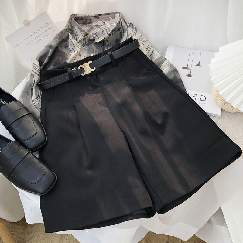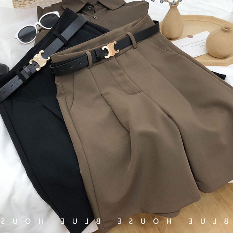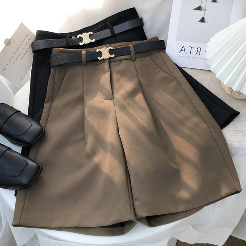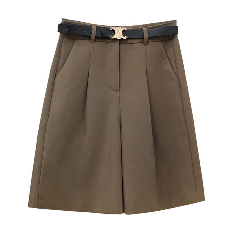 Coffee-colored suit shorts women's summer fat mm high waist Bermuda five-point pants large size a-line five-point pants 200 catties thin section