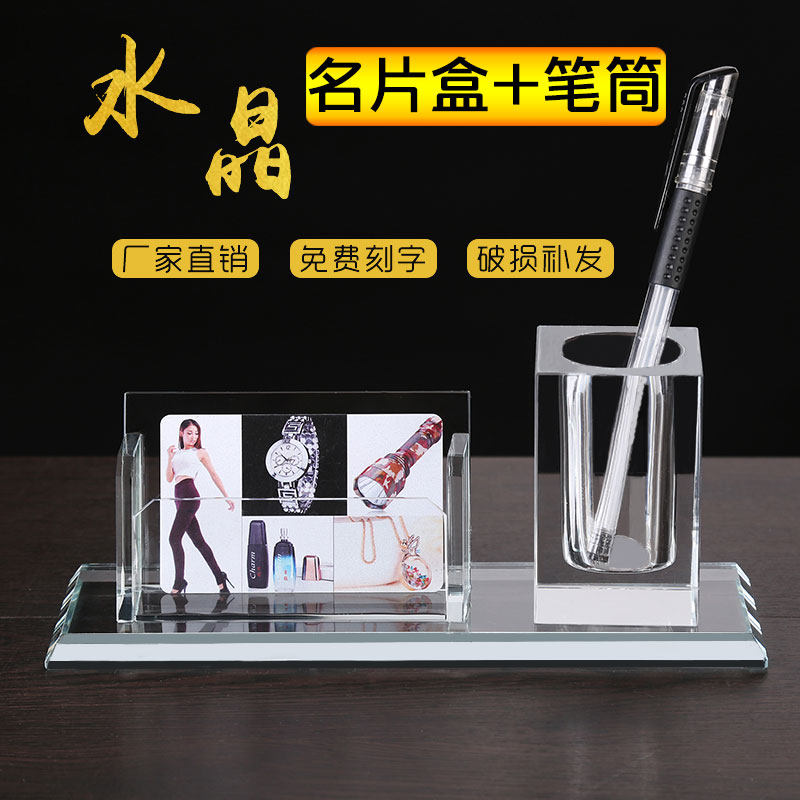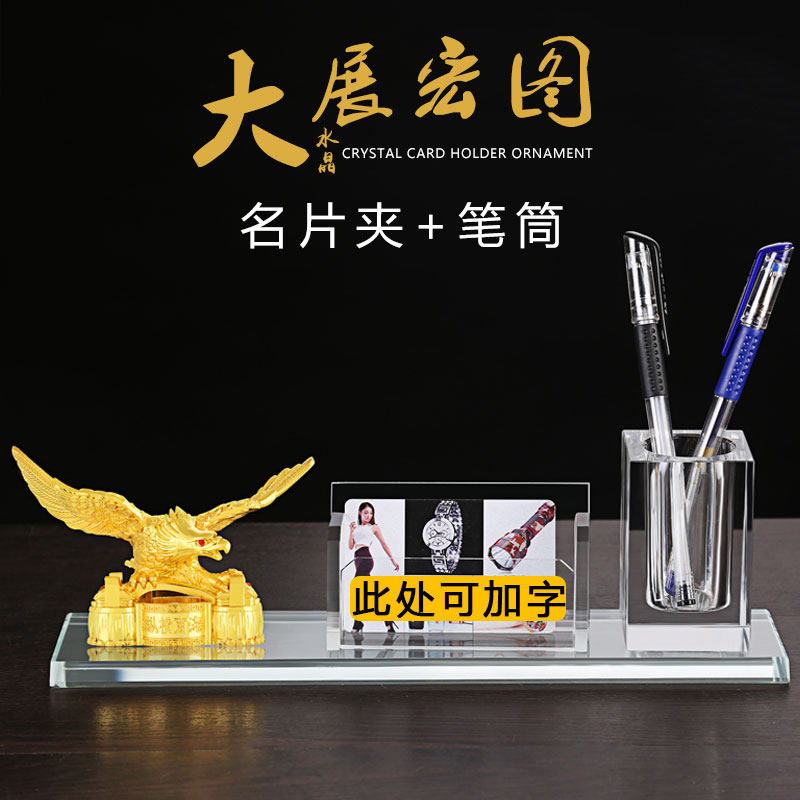 Creative Business Upscale Crystal Name Sheet Box Desktop Front Desk Swing Piece Personality Custom Letter Logo for men and women Office Business Card Shelf Pen Holder Containing Box Show Shelf Transparent sheet clip Large capacity