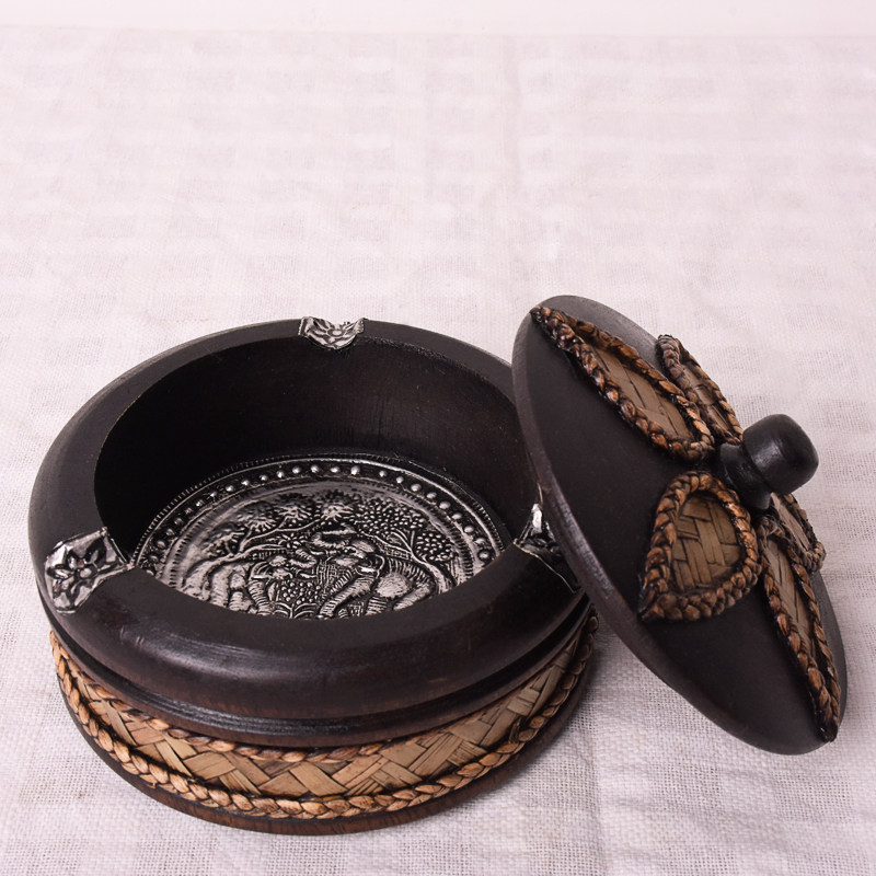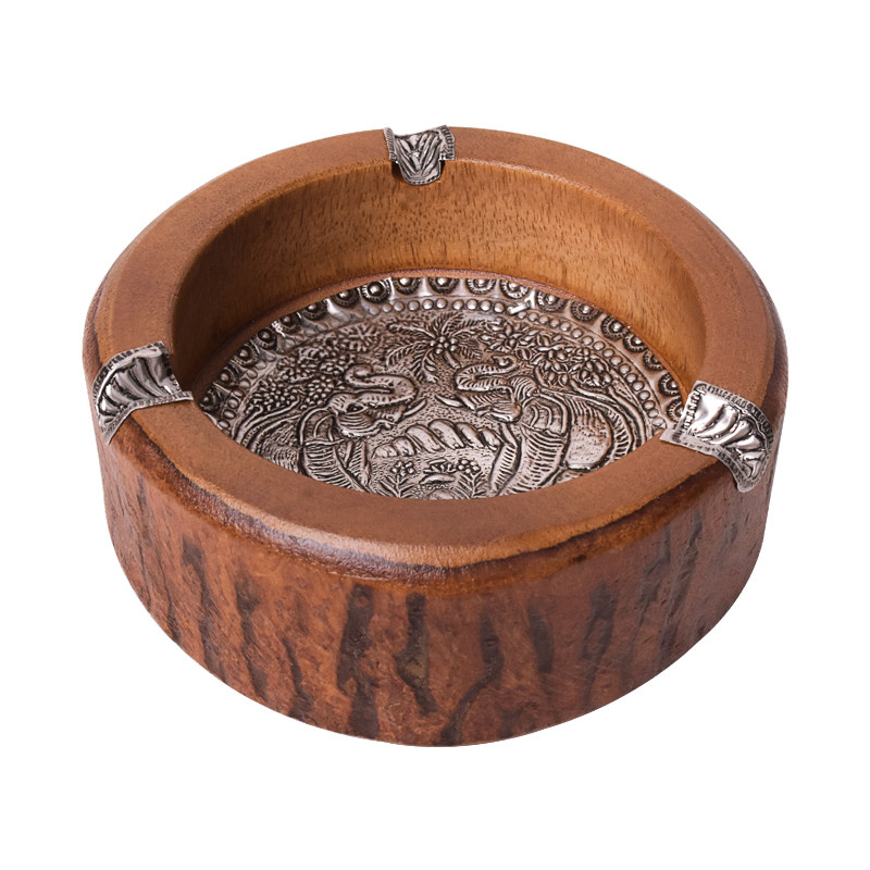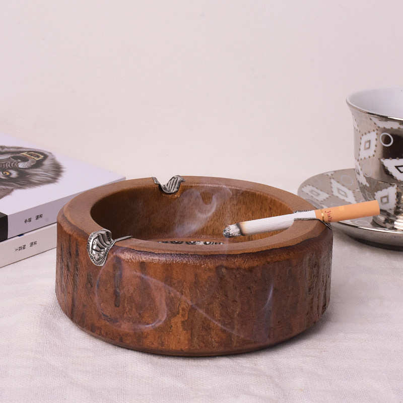 Wood ashtray creative personality trendsets for solid wooden living room office new Chinese retro-covered cylinder