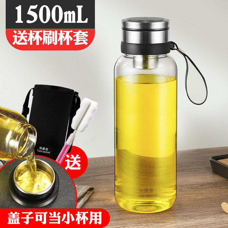 Large-capacity water glass glass cup men 1000ml portable with lid tea water separation tea cup 2000ml