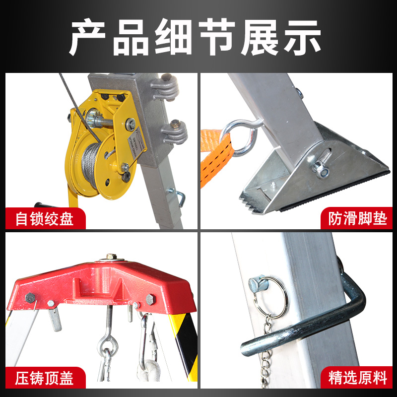 Aluminum alloy tripod (complete set) 1200 lbs Aluminum alloy tripod 1200 lbs Complete set with safety belt Aluminum alloy tripod 1200 lbs Safety belt safety rope Aluminum alloy tripod 1800 lbs
