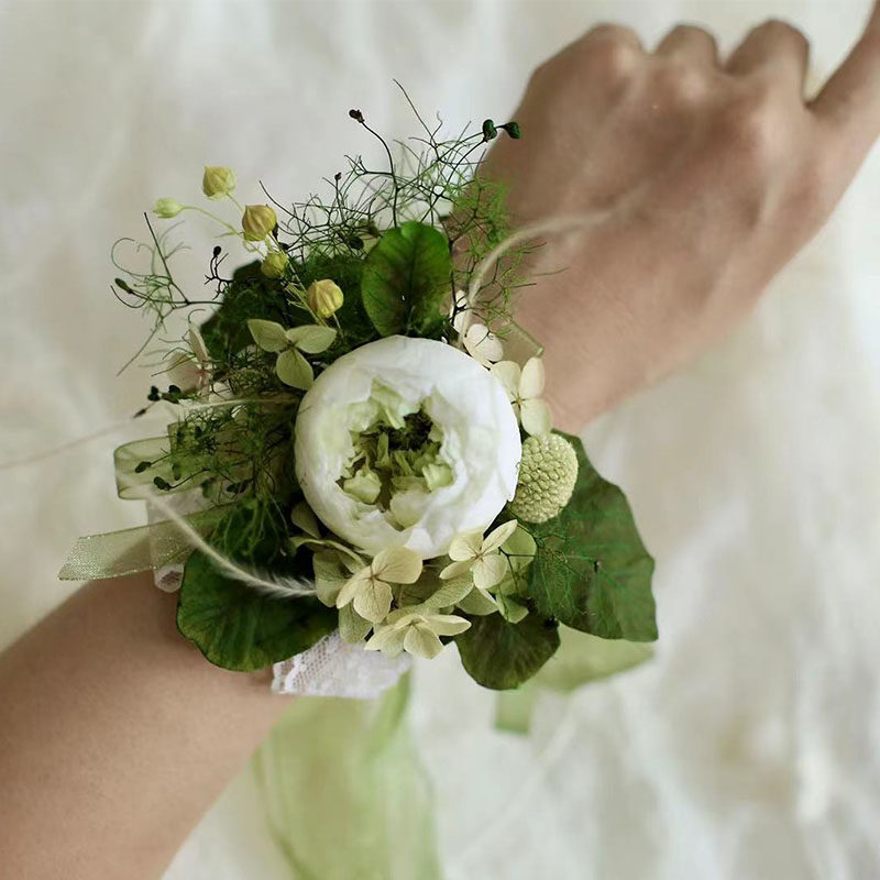 Groom, bride, wedding, wedding, real flower preservation, small fresh, white and green, parents, groomsmen, bridesmaid, corsage, wrist flower