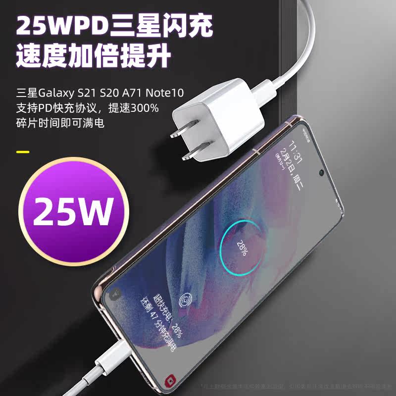 Suitable for Samsung s21 charger 25WPD fast charge a71 f52 s20 original data cable note20 plug set