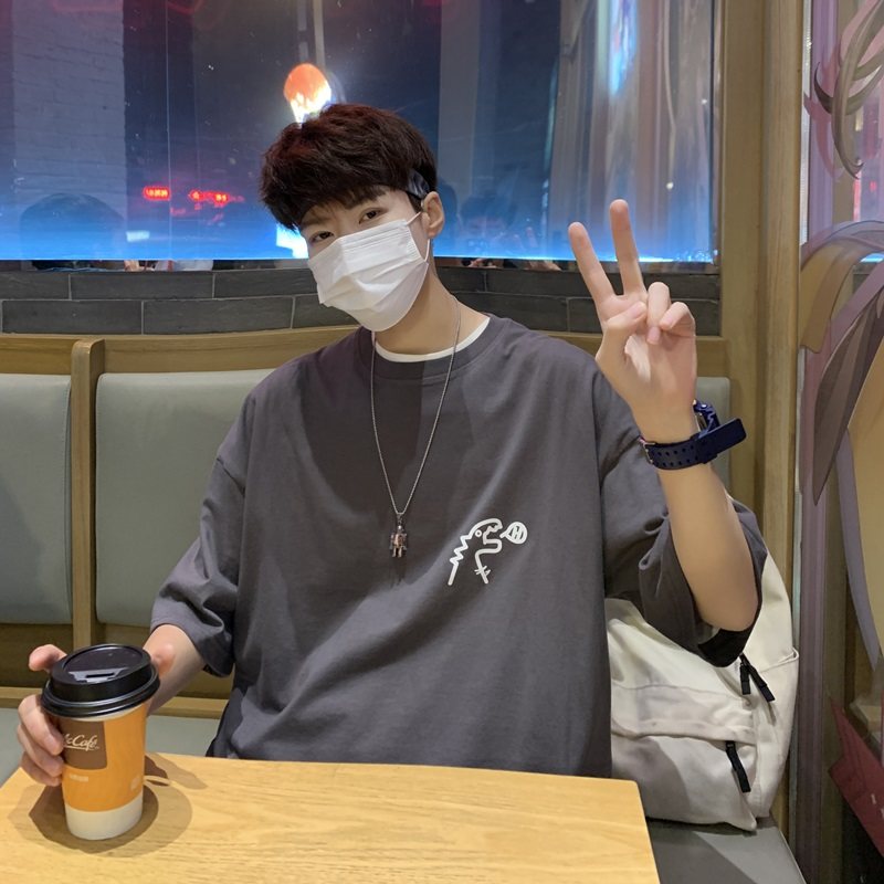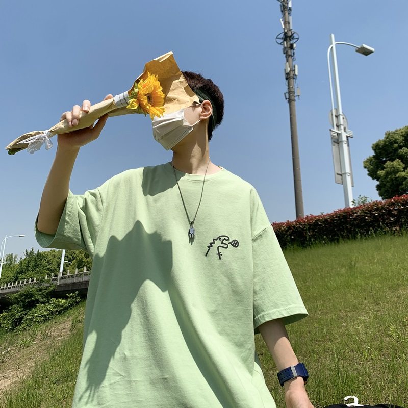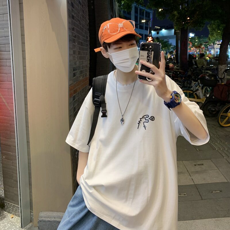 Little dinosaur short sleeve t-shirt men summer ins hong kong wind loose and versatile clothes trend tide brand design sense niche half sleeves