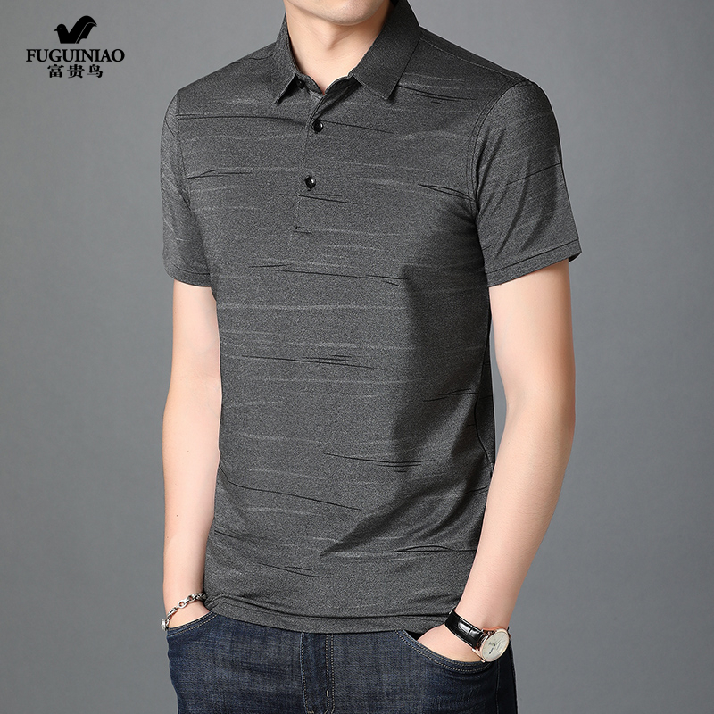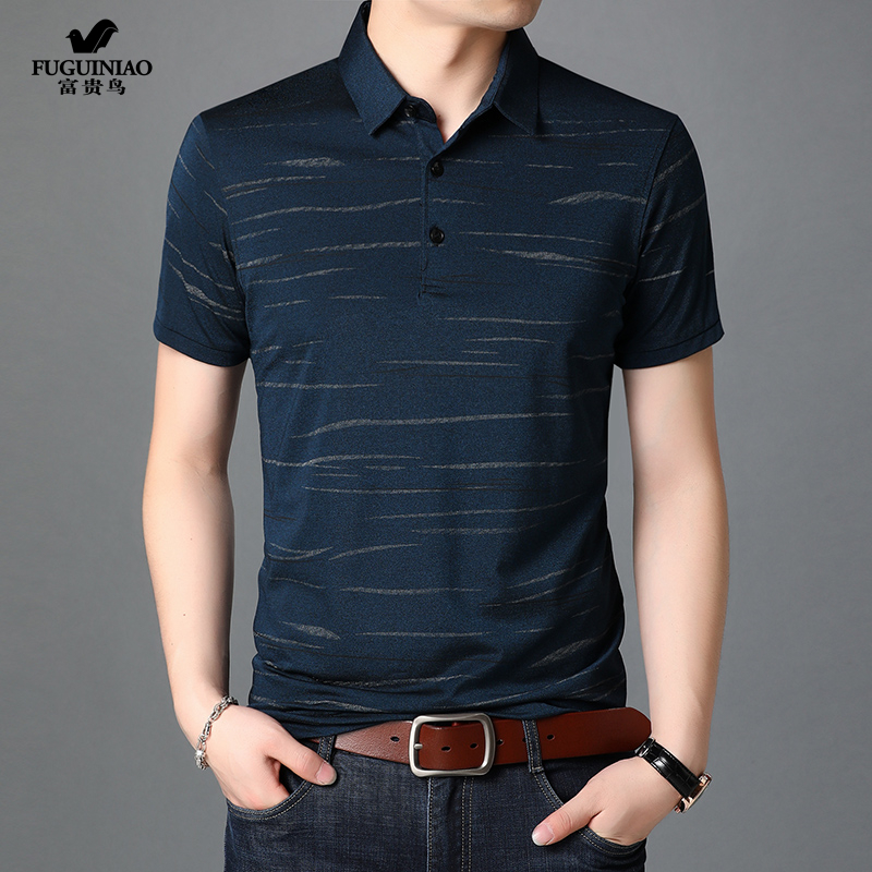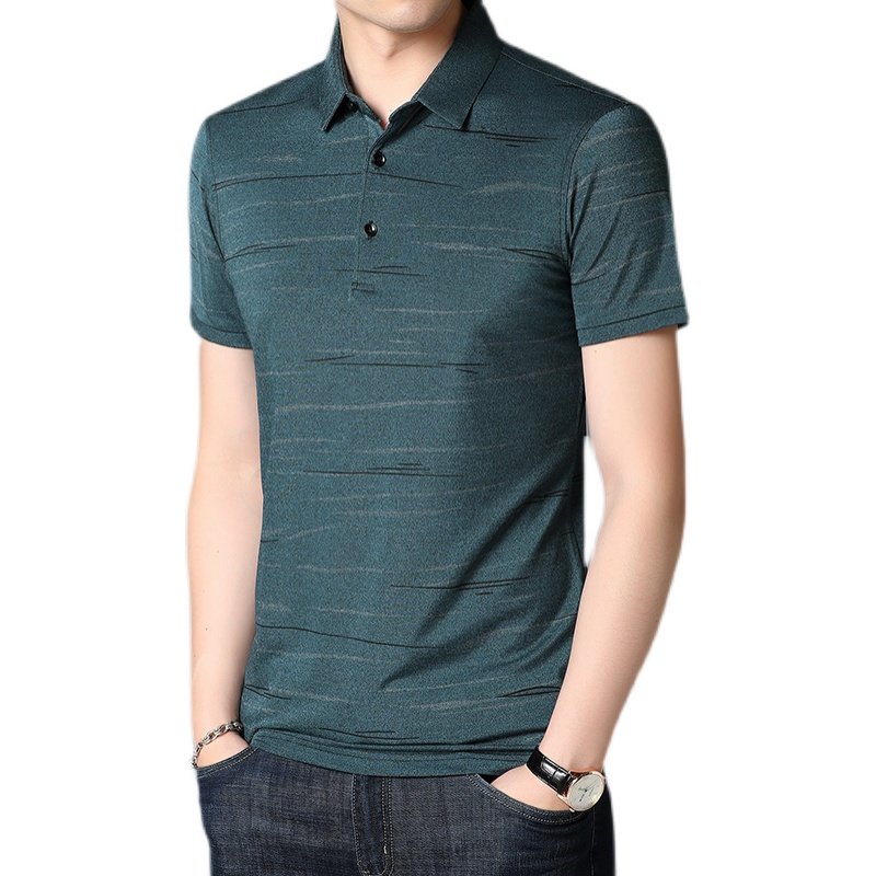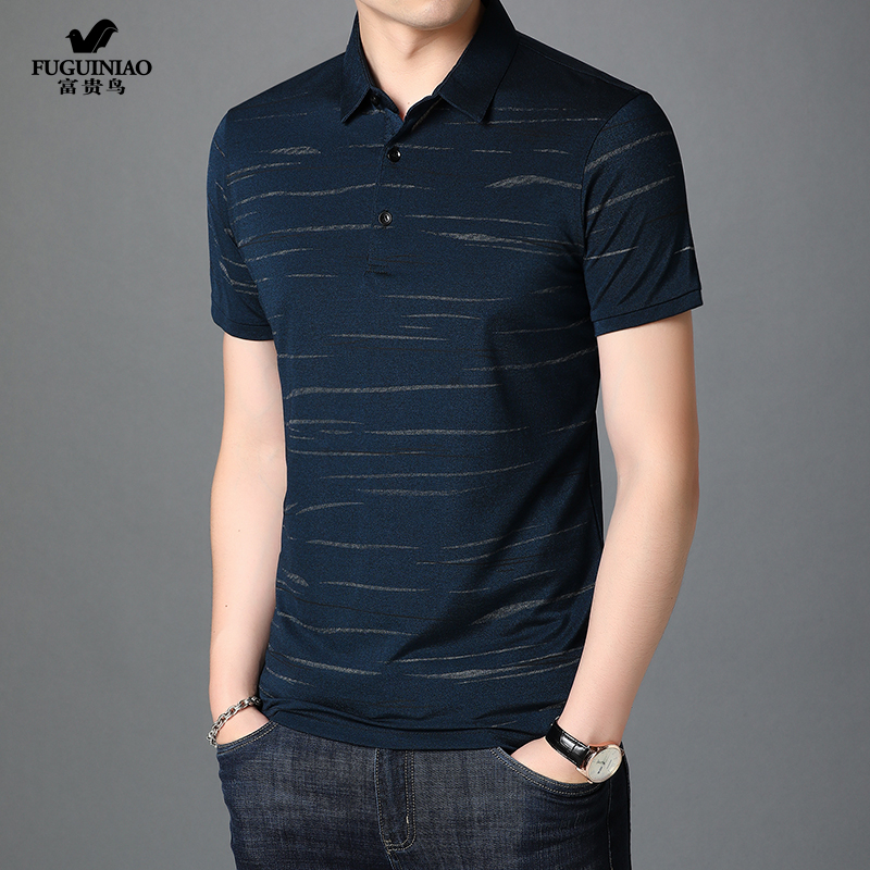 Rich and expensive polo polo shirt male thick Japanese crowdstriped Xia Guochao Ice and ice turtlenecks Summer mulberry Silk High-end Tide Card