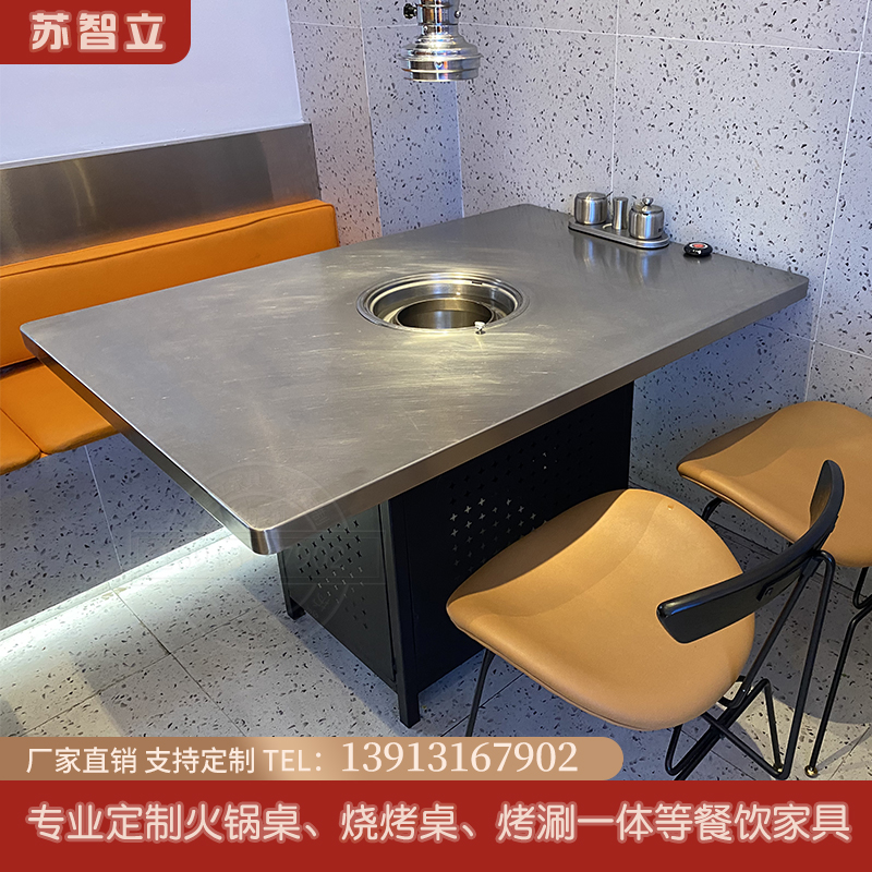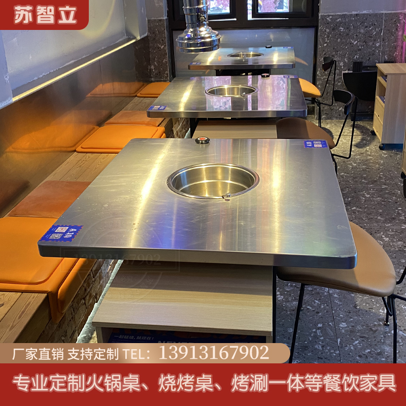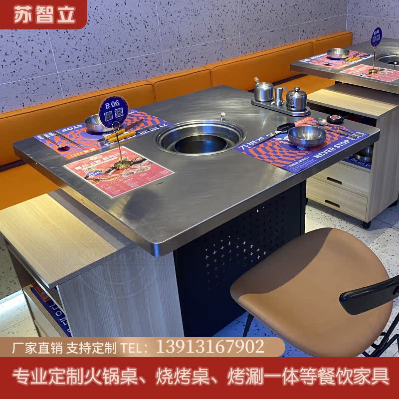 Korean cafeteria hot pot barbecue in one table smoke square barbecue grill roast one cook oven commercial