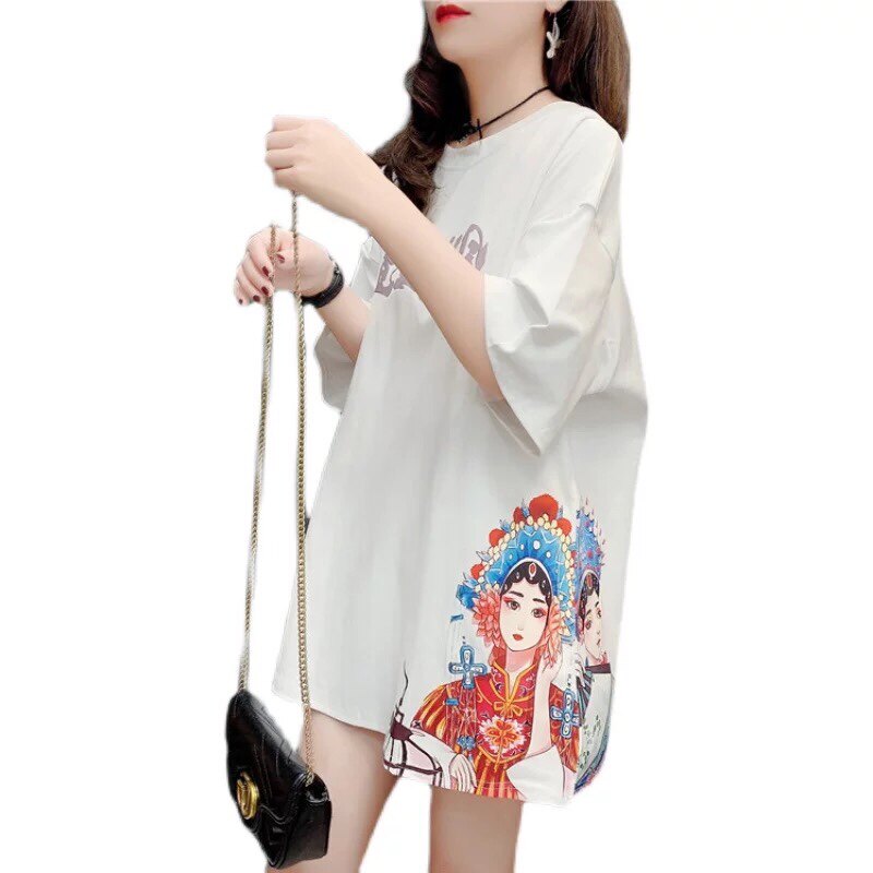 Pregnancy Woman Bottling National Tide Flowers Denier Short Sleeve T-Shirt Woman Summer 2021 New Large Size Loose half sleeves Long version of blouses