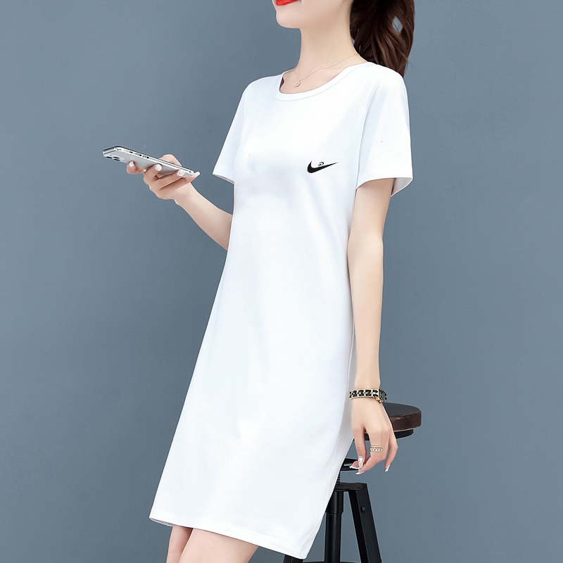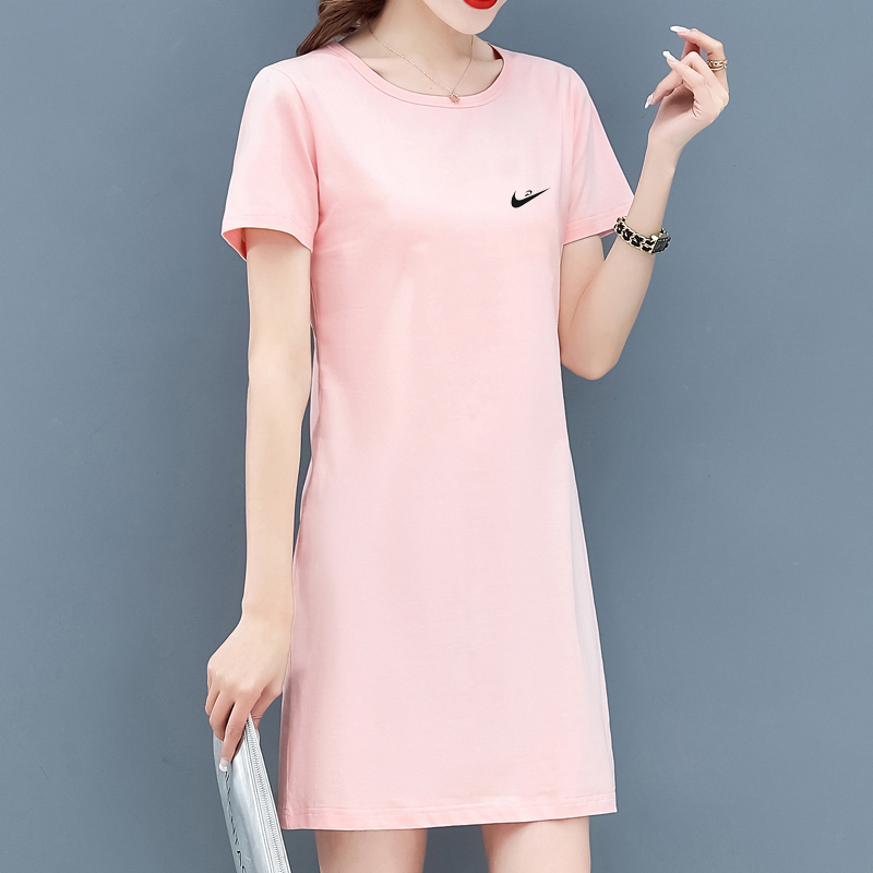 Korean version 2022 new summer pink t-shirt women's loose mid-length version cotton short-sleeved large size casual top trendy