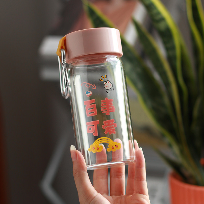 Cute creative water cup girls high-value ins portable glass small and convenient cup girl heart cup summer
