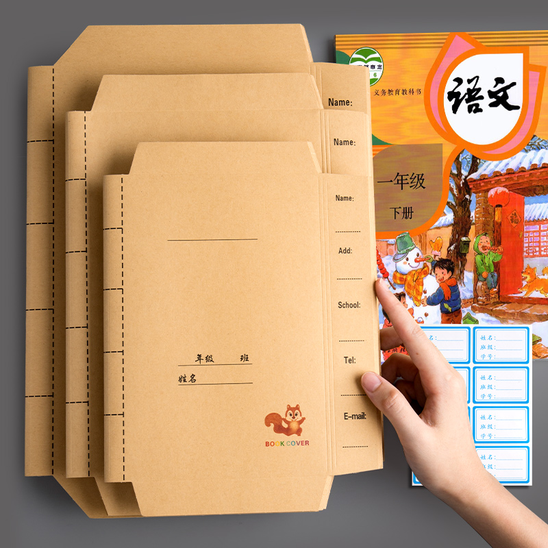 Kraft Paper Book Leather Bag Book Leather Elementary School Children Textbooks Paper China Wind Retro Cow Leather Book Cover Opaque Elementary School 1st Grade Lower Register a4 Brief Seal b5 Big Pack Paper Homework 16K