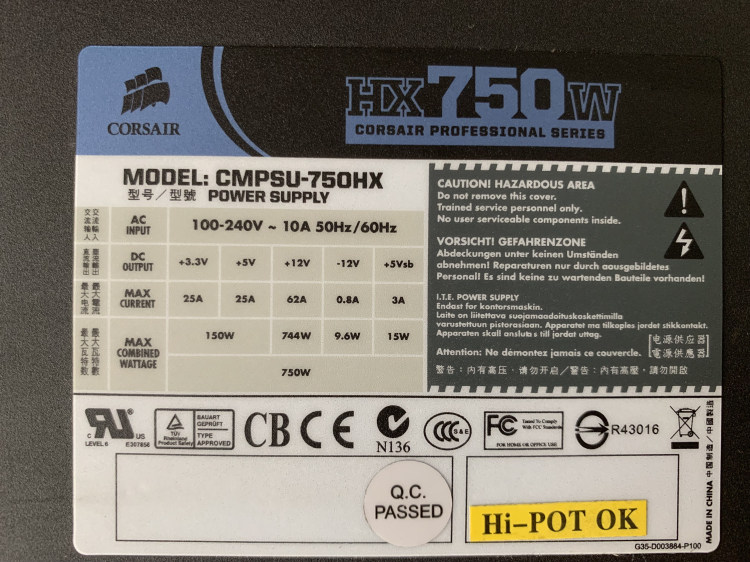 Corsair pirate ship HX750W Two-way CPU rated 750 W gold medal Half-module desktop PC Power supply