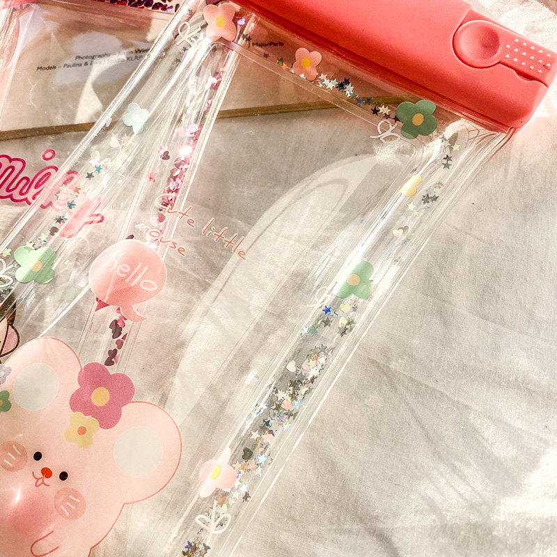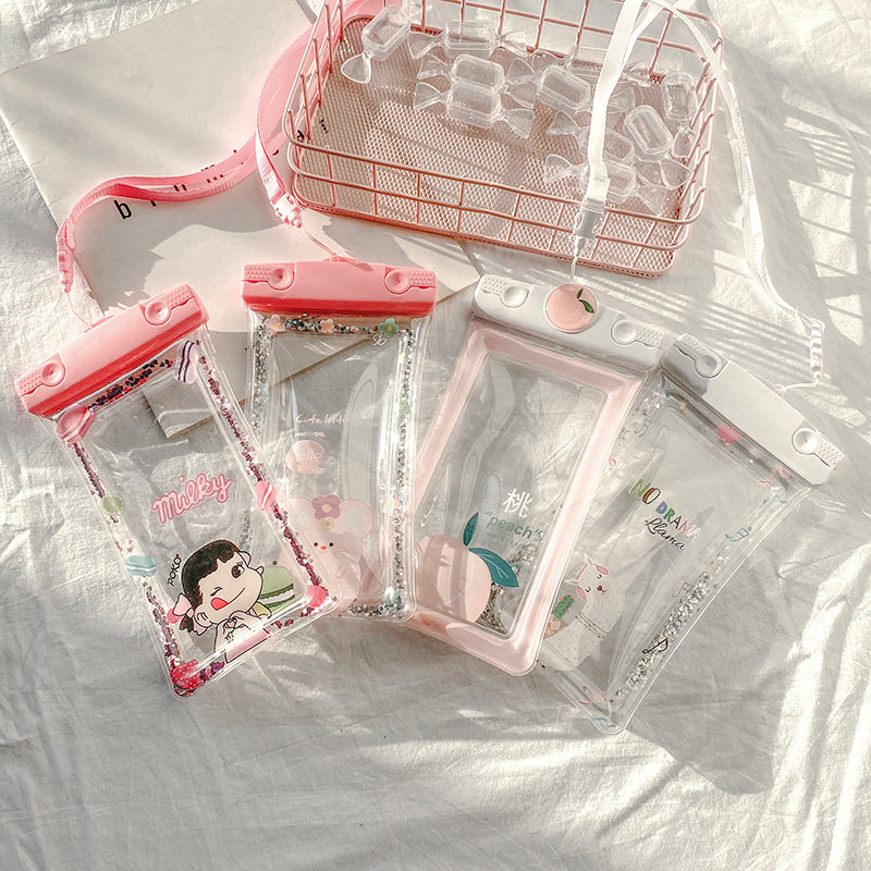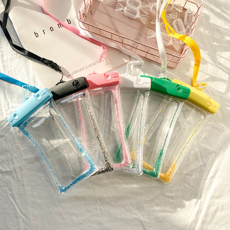 Solid color sequins inflatable mobile phone waterproof bag sealed touch screen photo swimming Apple Huawei mobile phone universal diving cover