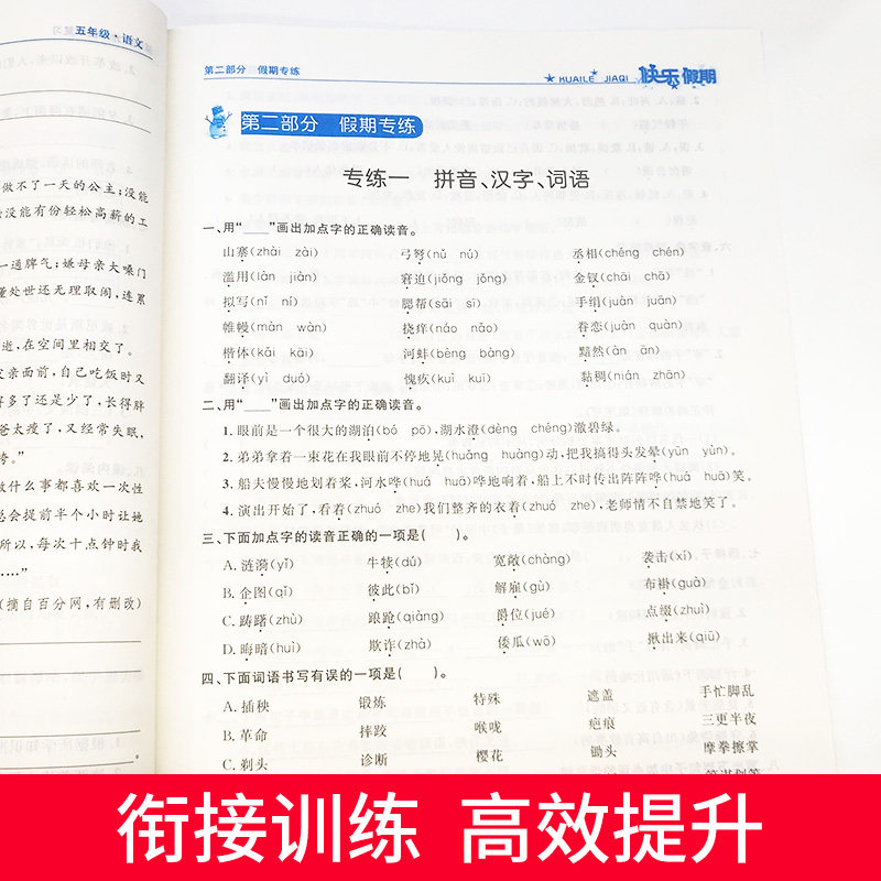 Time Optical Summer vacation Huanggang Happy Holiday 5th grade Language RJ Five-liter 6th grade Summer vacation bridging Department RJ Edition Language review Pre-study consolidation improvement Exercise Title Test Volume 5 Grade