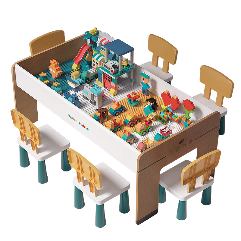 Children's multifunctional solid wood building block table size granules game table boy girl assembled puzzle baby toy table-Taobao