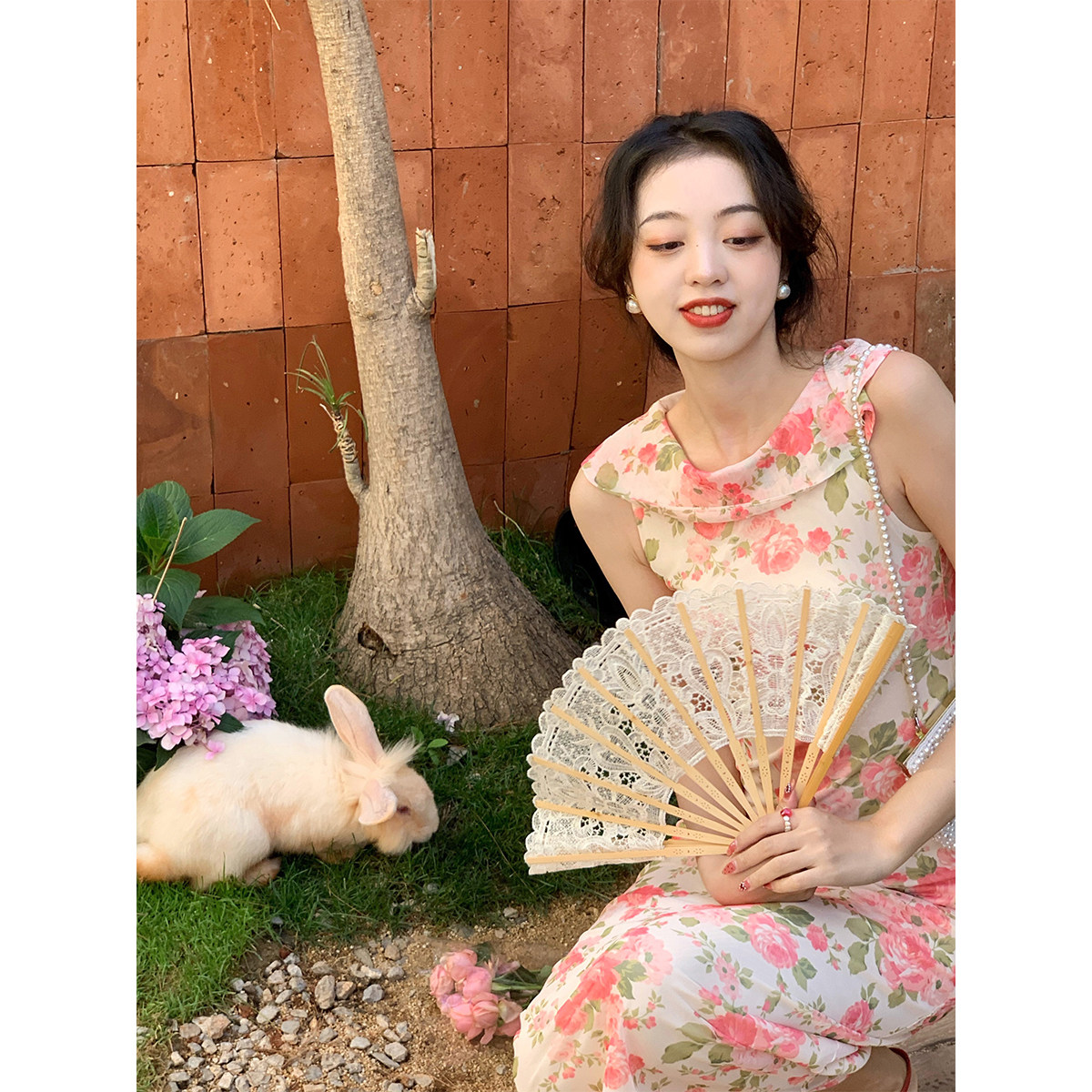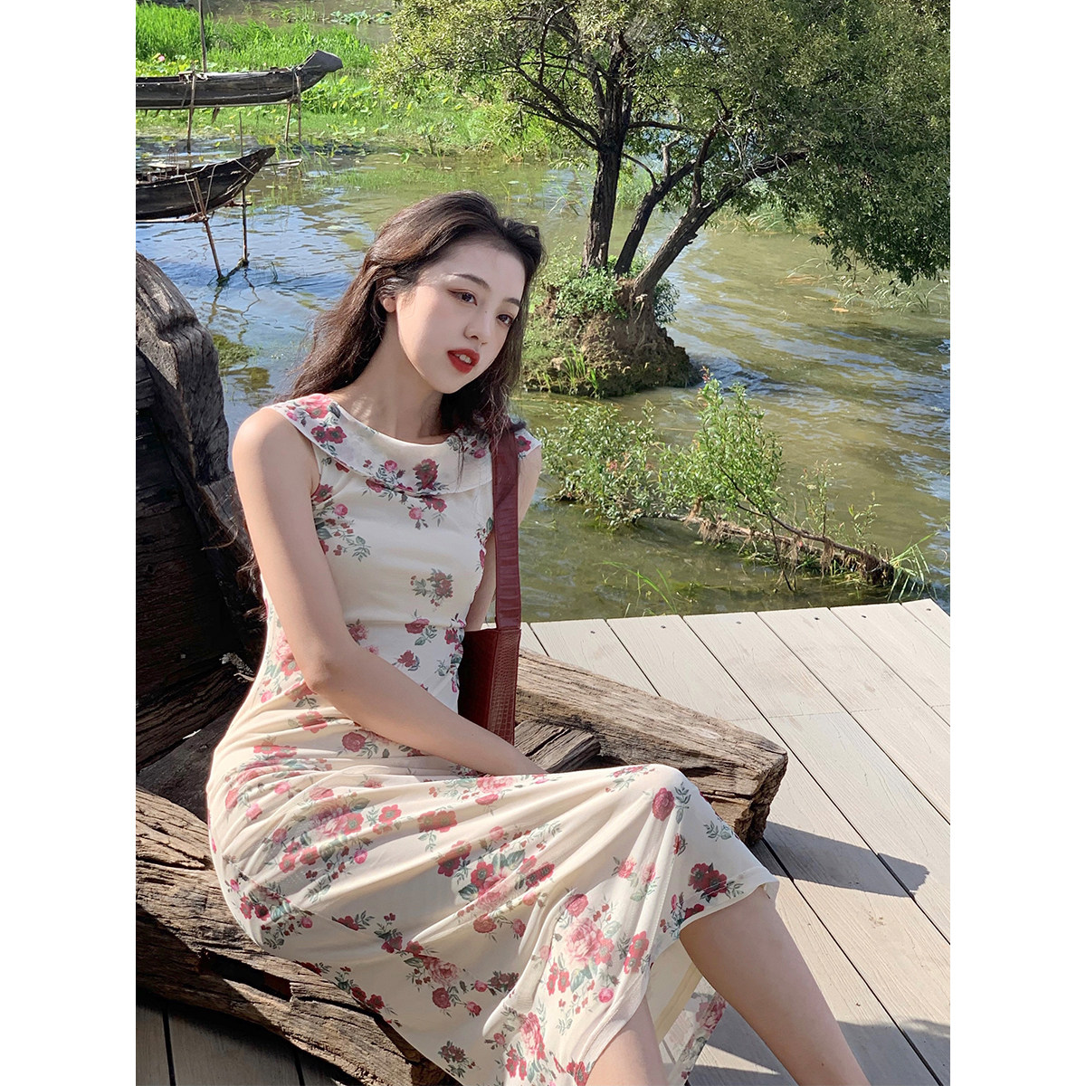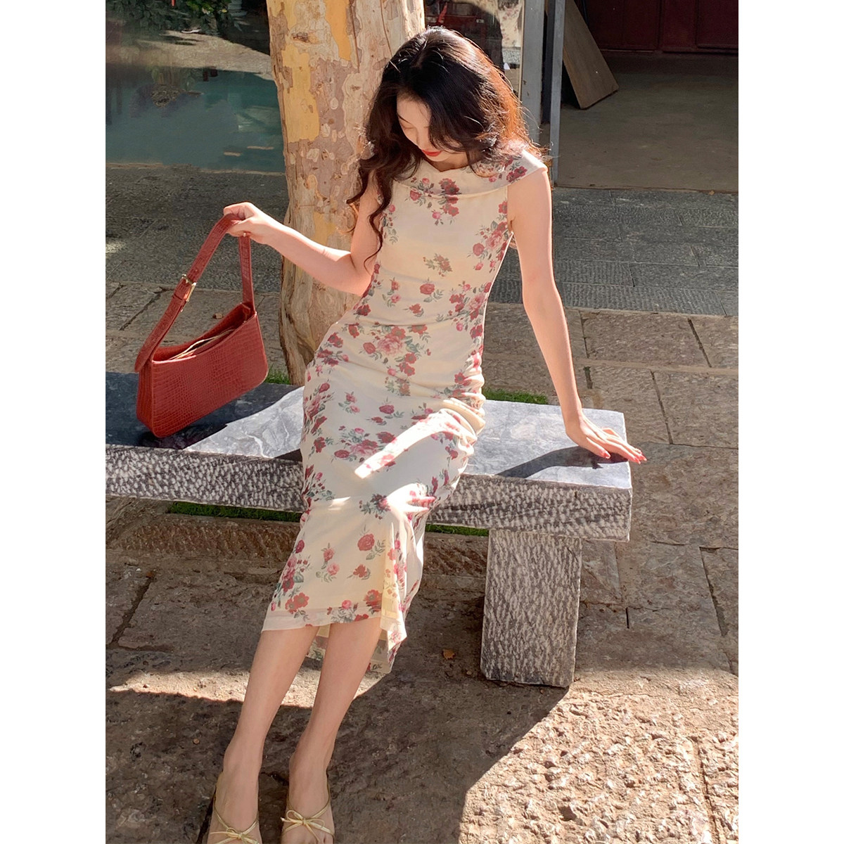 SYT is excellent in style and self-made French retro flower dress women's 2021 summer self-cultivation sleeveless midi skirt