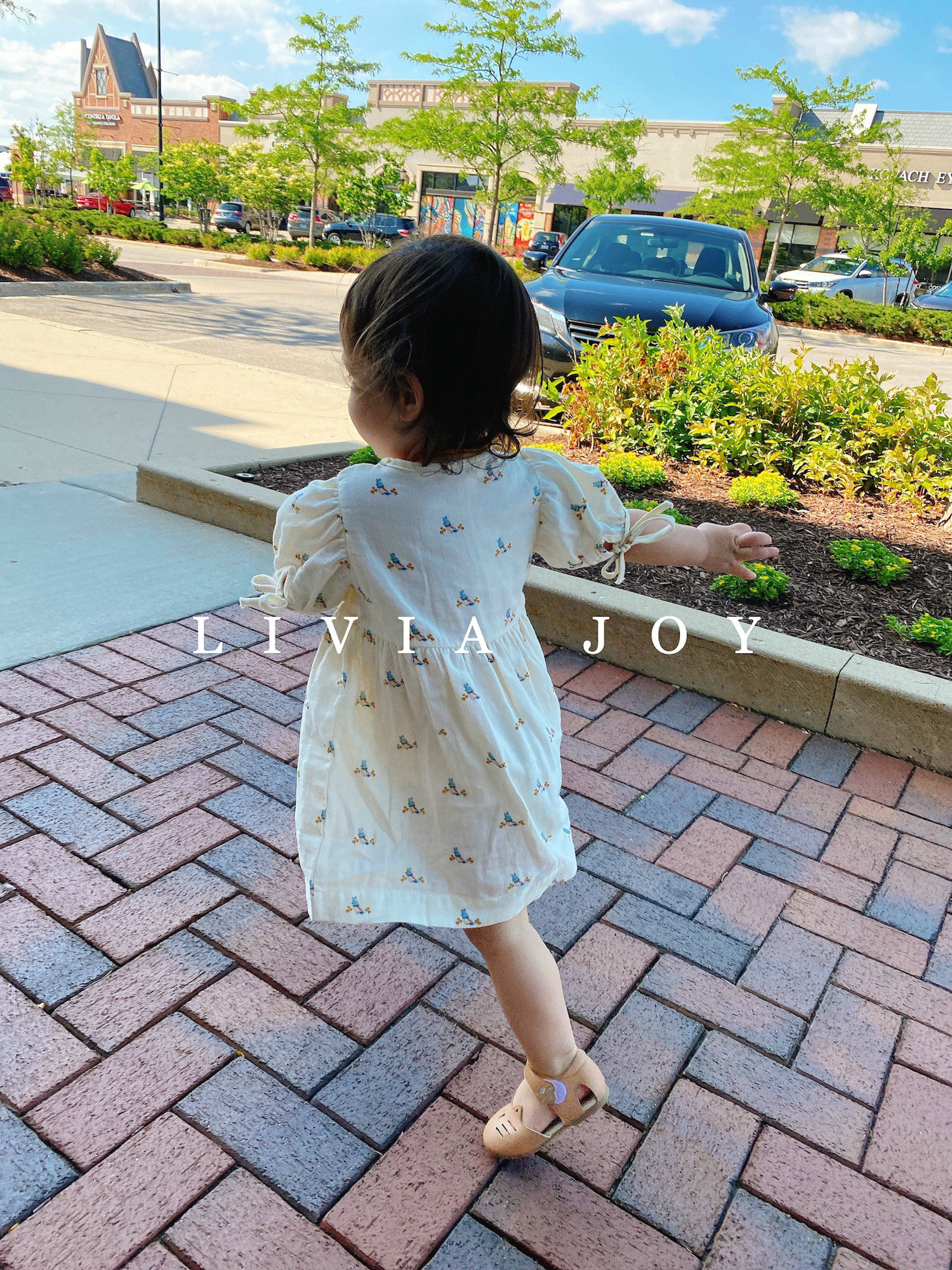 Livia Joy original hand-painted bird print exclusive custom-dyed beige dress girl thin cotton