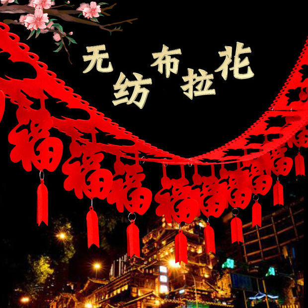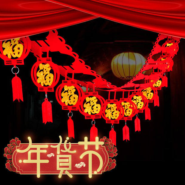 Fu word for Spring Festival Lunar New Year lantern large red pulling strips decorated New Year's Day Indoor festive pendant Pendant Mall Arrangement Hanging